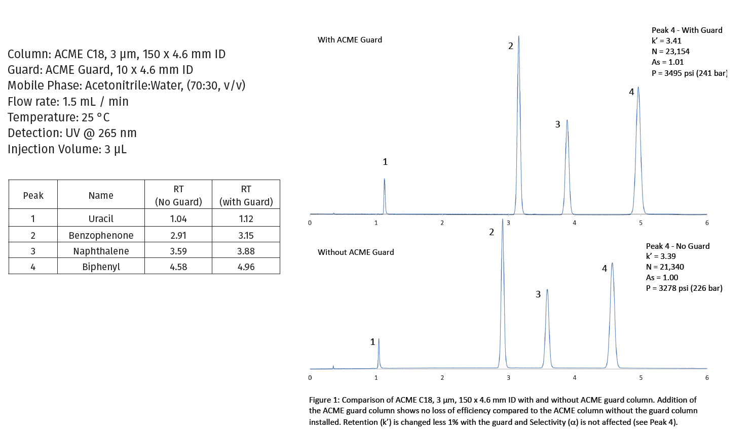 Example of Separations with and without ACME Guard Column